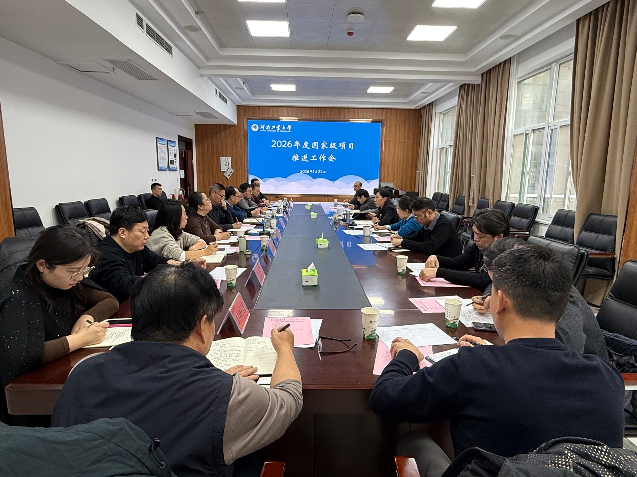 为扎实推进国家级科研项目申报工作,明确2026年社科重点工作,2026年1月22日下午,社会科学处在行政楼B404会议室组织召开了2026年度国家级项目推进工作会。各文科学院院长、科研院长、理工科学院代表及社会科学处全体成员参加会议,副校长白艳红出席会议并做指导讲话。会议由社会科学处处长肖开红主持。